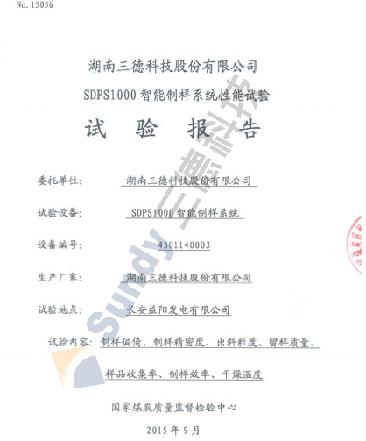 ÈÕǰ£¬£¬£¬£¬£¬£¬×ðʱ¿Áú¿Æ¼¼»ñÈ¡Óɹúµç¿ÆÑ§ÊÖÒÕÑо¿ÔºÏÂÊô¹úµçÄϾ©ÃºÌ¿ÖÊÁ¿¼àÊÓÄ¥Á·ÖÐÐijö¾ßµÄ¡¶ÃºÌ¿ÖÆÑù×°±¸ÐÔÄÜÊÔÑéÊÖÒÕ±¨¸æ¡·£¨±àºÅ£ºJS015-15-2015£¬£¬£¬£¬£¬£¬ÒÔϼò³Æ¡°¡¶±¨¸æ¡·¡±£©¡£¡£¡£¡£¡£¡£¡£¡£¡¶±¨¸æ¡·Åú×¢£¬£¬£¬£¬£¬£¬Óɸù«Ë¾ÑÐÖÆµÄSDPS1000È«Í¨ÖÆÑùϵͳ£¨¡¶±¨¸æ¡·³Æ¡°È«×Ô¶¯ÖÆÑùϵͳ¡±£©ÖÆÑùϸÃܶȡ¢³öÑùÖÊÁ¿ÓëÁ£¶È¡¢¸ÉÔïζȵÈÇкϹú±êÒªÇ󣬣¬£¬£¬£¬£¬²»±£´æÈ«Ë®·Ö¡¢»Ò·ÖÆ«ÒУ¬£¬£¬£¬£¬£¬ÖÆ·ÛÍøÂçÂÊÆ½¾ù¸ß´ï98.45%¡¢ÇÒÆ½¾ùÖÆÑùʱ¼äΪ13.9min¡£¡£¡£¡£¡£¡£¡£¡£ÕâÊǼÌ2014Äê9Ô¹ú¼Òú̿ÖÊÁ¿¼àÊÓÄ¥Á·ÖÐÐÄÐÔÄÜÅжϺ󣬣¬£¬£¬£¬£¬SDPS1000È«Í¨ÖÆÑùϵͳÔٴλñµÃº£ÄÚȨÍþ